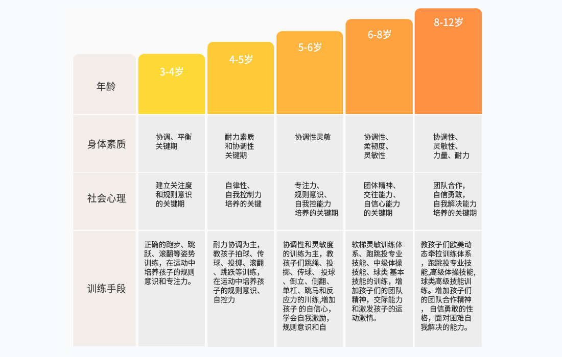 循序渐进的发展少儿动作、体能,培养少儿情感、认知的能力,锻炼到少儿上肢、